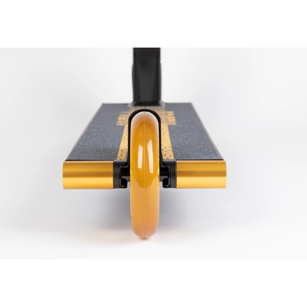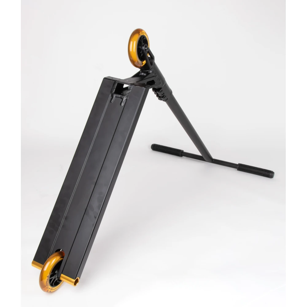 Следующими важными для райдера особенностями является дека, передняя часть которой скошена и заварена. В качестве опоры для ноги и предотвращения случайного торможения служит стальной фендер. Указанные параметры обеспечивают высокое качество крюков, неограниченное количество прыжков и гарантируют безопасность ездока.
